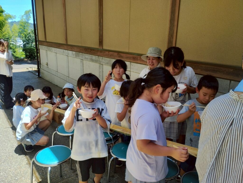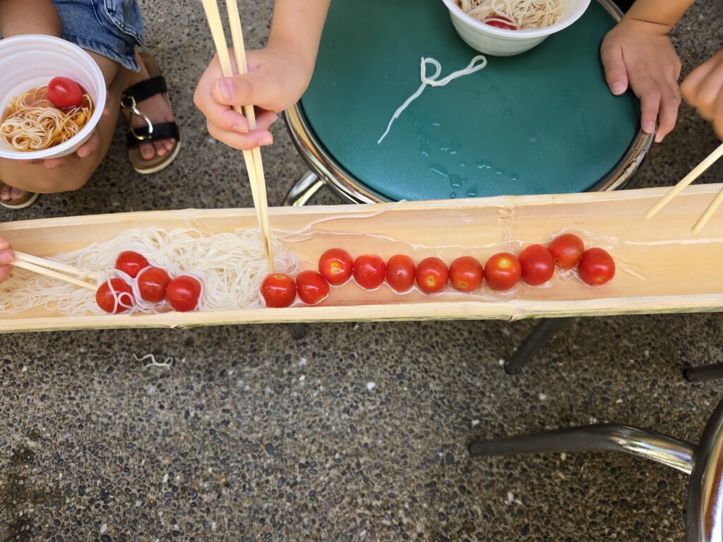 お昼は、みんな楽しみにしていた流しそうめんタイム🍜🎋