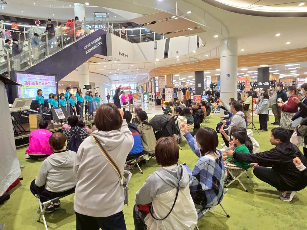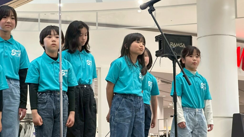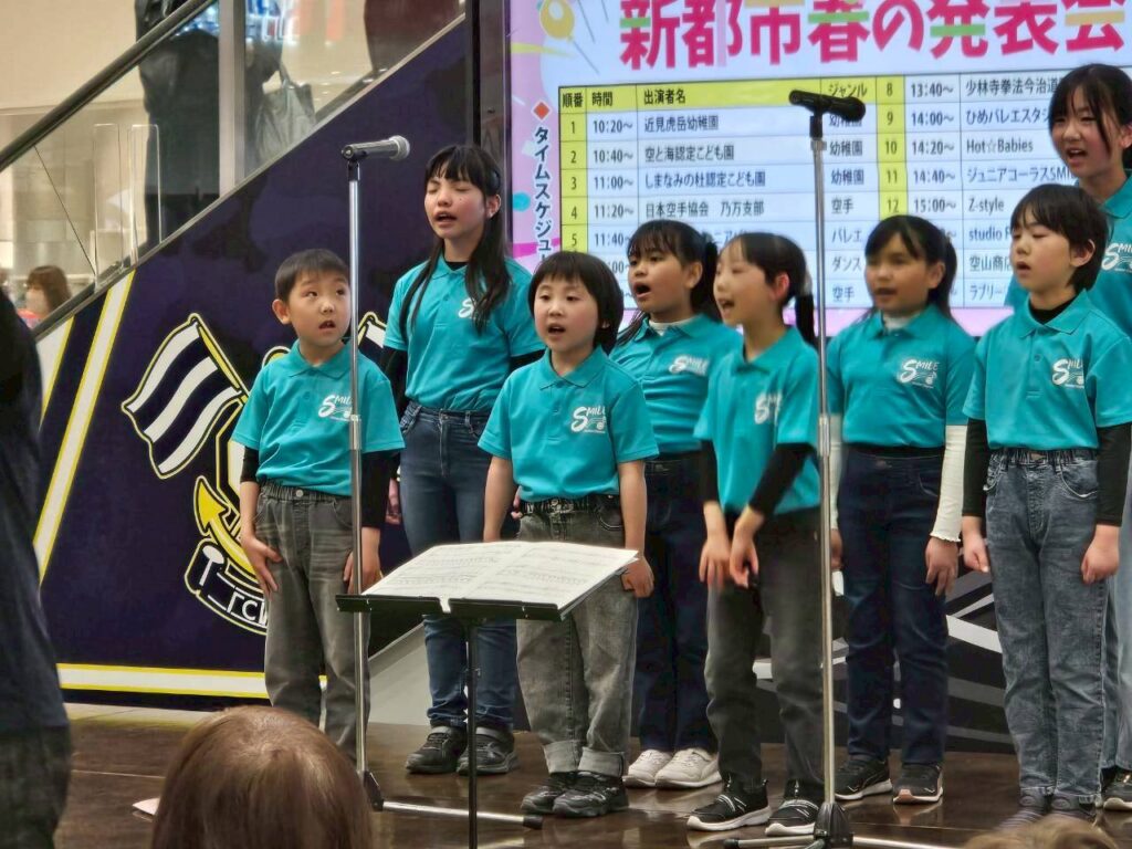 2026年3月21日(土)、イオンモール今治新都市きらめきコートで行われた「新都市春の発表会」に、ジュニアコーラスSMILEが出演しました🎤✨